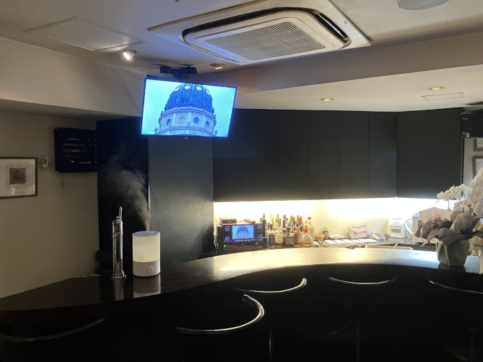 店内はシックで落ち着いた雰囲気で、最新のカラオケ設備もあります。